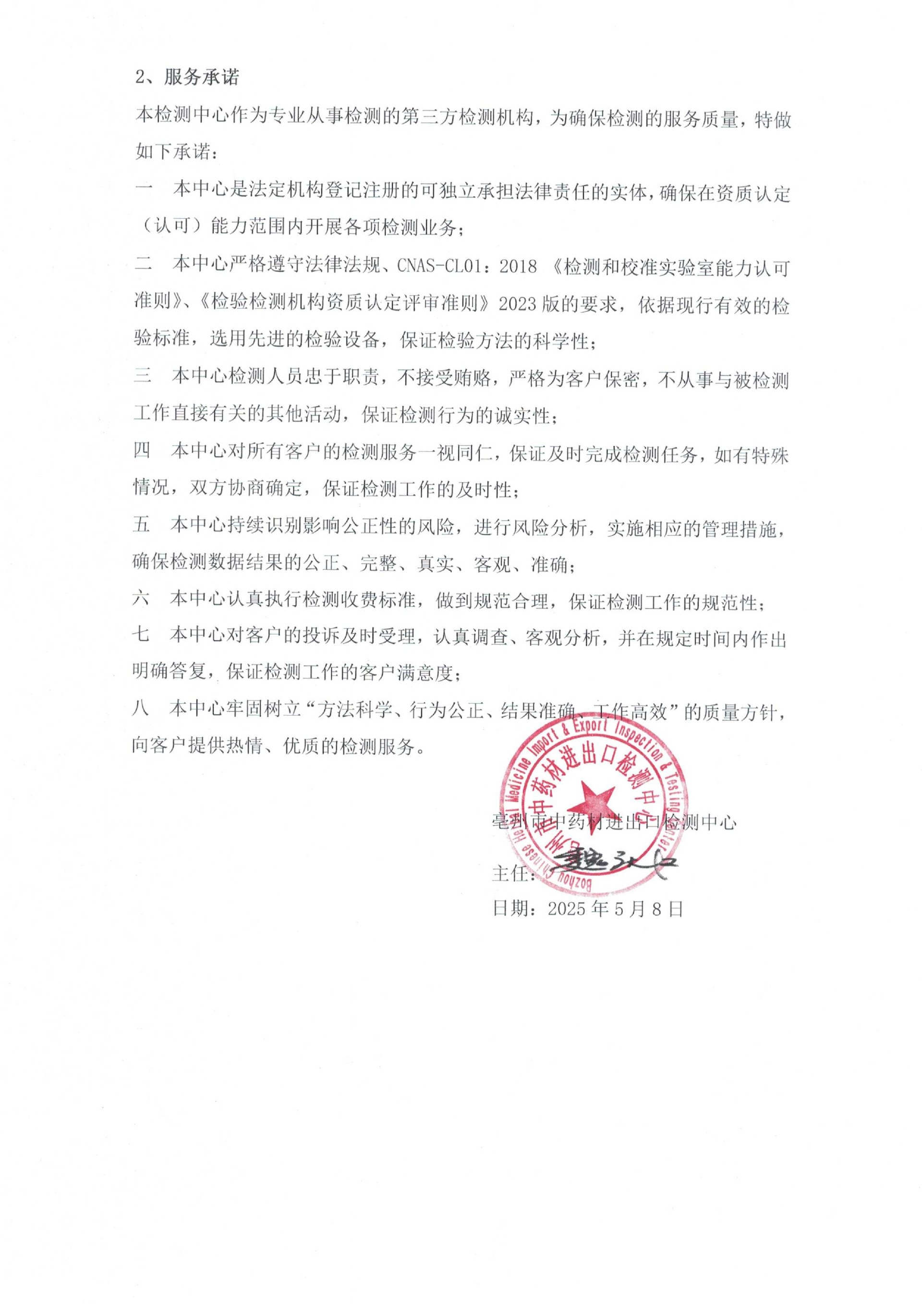 檢測中心公正性、保密性聲明和服務(wù)承諾